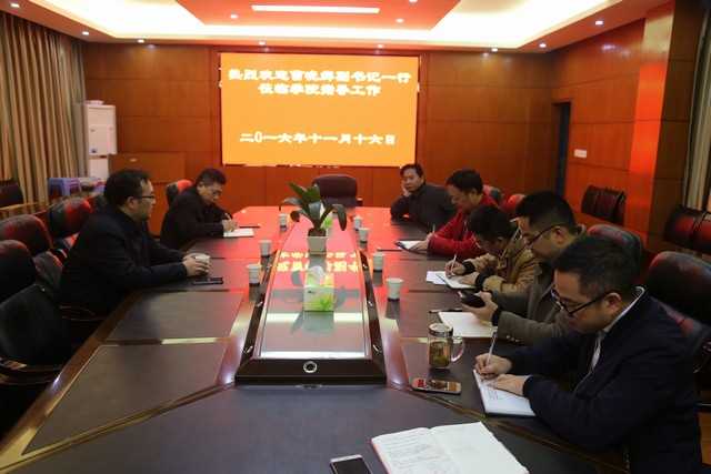 11月16日上午,校党委副书记曹晓鲜率校党委统战部部长、组织部副部长黄生祥来到我院检查“两学一做”学习教育进展情况、传达和学习党的十八届六中全会精神情况,并就学院干部队伍建设和师资队伍建设情况进行调研。院党委书记黎克双,副院长李政忙,院长助理丁建军、龙海军,院学工办主任胡锦湘,院办公室主任王泳兴参加了本次检查和调研。