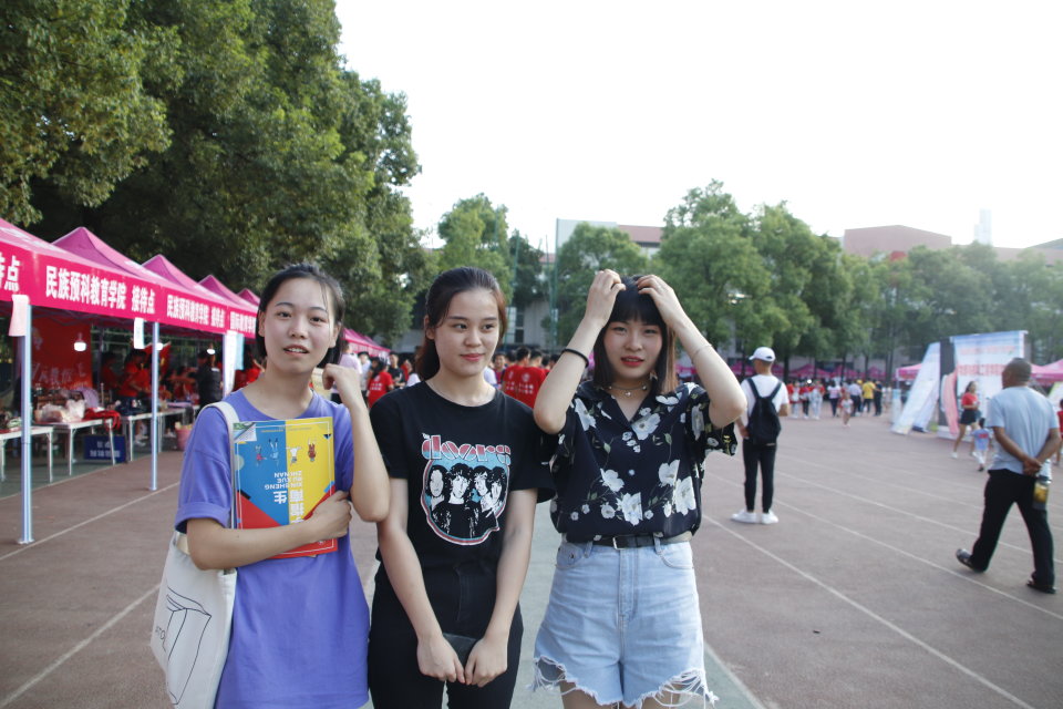 和两个漂亮小伙伴结伴来报名的16级工商管理2班李冬芸说:“我一下火车,学校的接待点就有众多的迎新志愿者马上微笑着迎上来,‘抢’下我手中沉重的行李。”她一次又一次地强调道:“必须得为志愿者的服务点个赞,实在是被志愿者的举动暖到。”