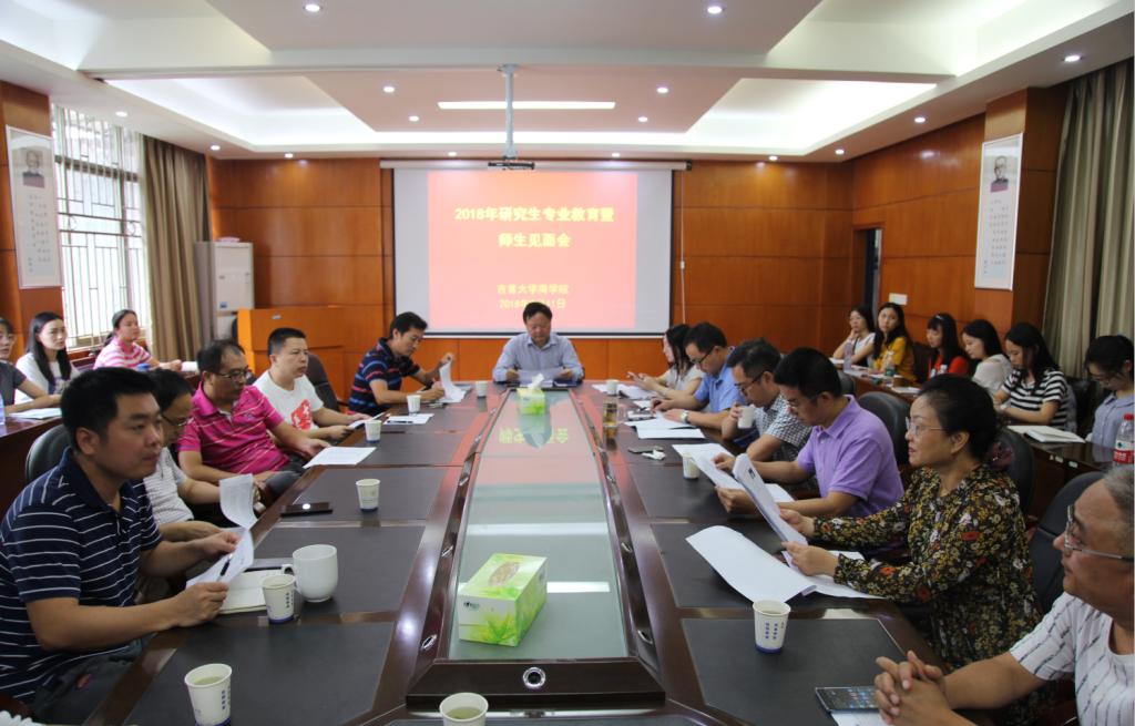 2018年9月11日上午,新葡京官网在院会议室召开了2018年研究生专业教育暨师生见面会,院党委书记黎克双、主持工作副院长彭耿、副院长丁建军、龙海军以及新葡京官网全体硕士研究生导师出席会议,2018级硕士研究生新生参加了见面会。