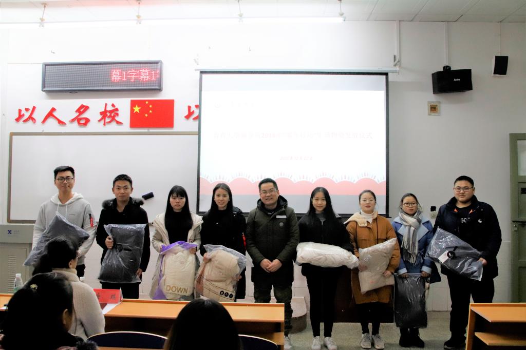 12月27日,新葡京官网于砂子坳校区第三教学楼3202教室举行2018年“暖冬行动”生活物资发放仪式,新葡京官网党委副书记胡锦湘、团总支书记唐琪出席,获得物资的所有学生参加。仪式由院学工办副主任陈洁主持。