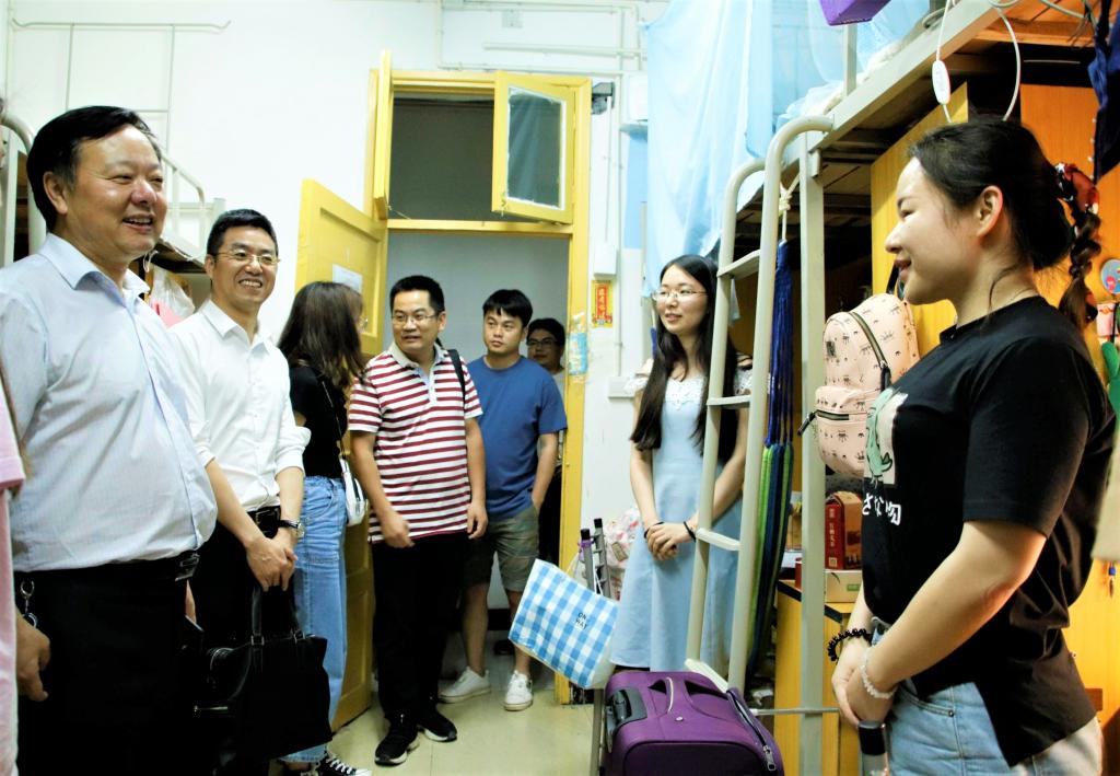 为更好的了解毕业生返校情况,确保学院2019届毕业生安全文明离校,5月27日下午,新葡京官网党委书记黎克双、副书记胡锦湘、主持工作副院长丁建军、辅导员陈洁、袁梓翔、张湘华、田惠深入砂子坳校区学生寝室,看望慰问返校毕业生。