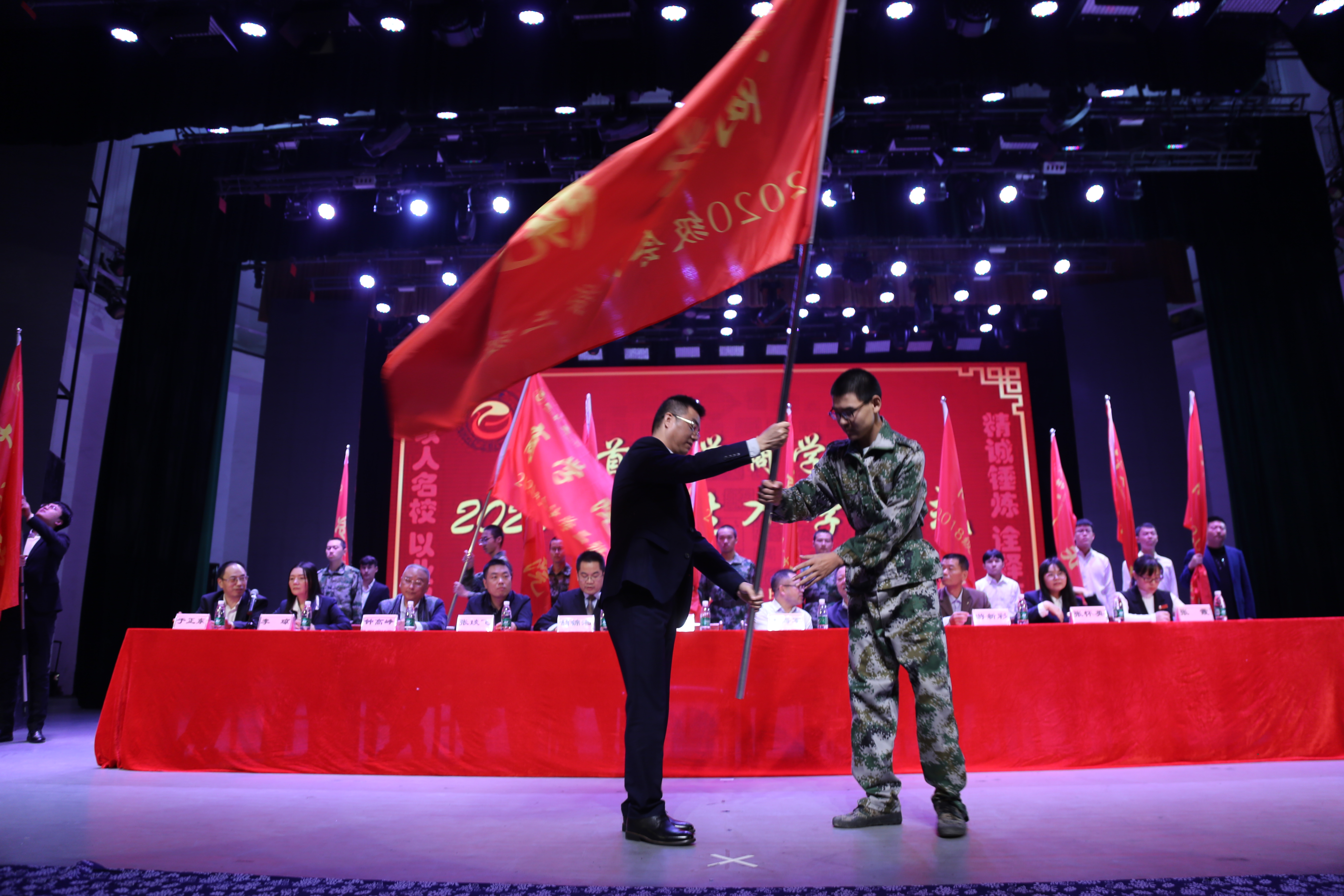 在授班旗仪式上,院长丁建军在庄严的校歌声中为新增的13个班级授予了班旗。当看到本班班旗在舞台上飘扬,在场的所有学生都非常激动,感觉自己真正地融入了一个新的集体之中,现场气氛十分热烈。相信学院“精诚锤炼,诠释商道”的院训已经深深地刻入新生的脑海中,他们一定会时刻铭记以班集体为荣、以学院为荣、以学校为荣。