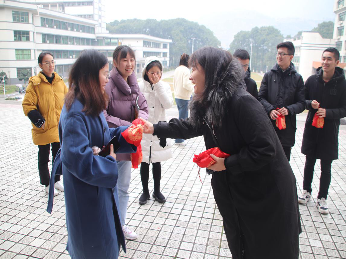 寒冬送温暖,情系考研生。为鼓励考研学子树立信心,缓解考研压力。12月23日,新葡京官网在砂子坳校区图书馆门口开展了“考研送温暖”活动。院团总支书记唐琪、2019级辅导员邹欢以及团总支学生会成员参与了本次活动。
